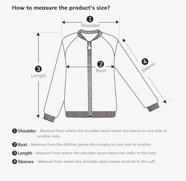 5XL: Bust 130 cm (51.18 in), Shoulder 53 cm (20.87 in), Sleeves 66 cm (25.98 in), Length 81 cm (31.89 in)