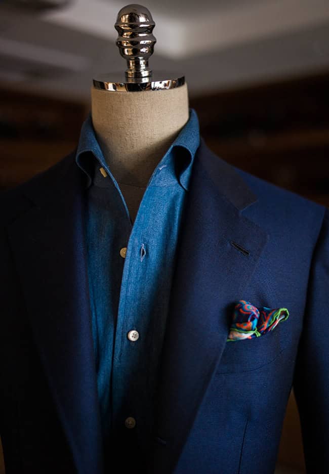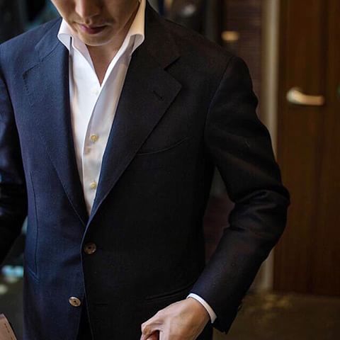 For it to look / function as described, the one piece collar requires a skilled pattern cutter, making it almost exclusively a custom or bespoke item. As such, one piece collars are rarely found in ready wear shirts. As the placket and collar are one, the pattern needs to be cut with absolute precision and with an exact curvature that give it such a distinct look. It’s an incredibly difficult construction that if cut poorly, ruins the entire shirt’s look. As a default, we build our one piece collar with visible collar point buttons however we can also makd it with hidden buttons behind the collar points.